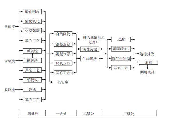 制革廢水的處理方法:采用篩濾或自然沉淀去除毛、皮上肉、皮片及沉淀物等,然后混入生活污水采用混凝沉淀,生物濾池或活性污泥等生化法進行處理。